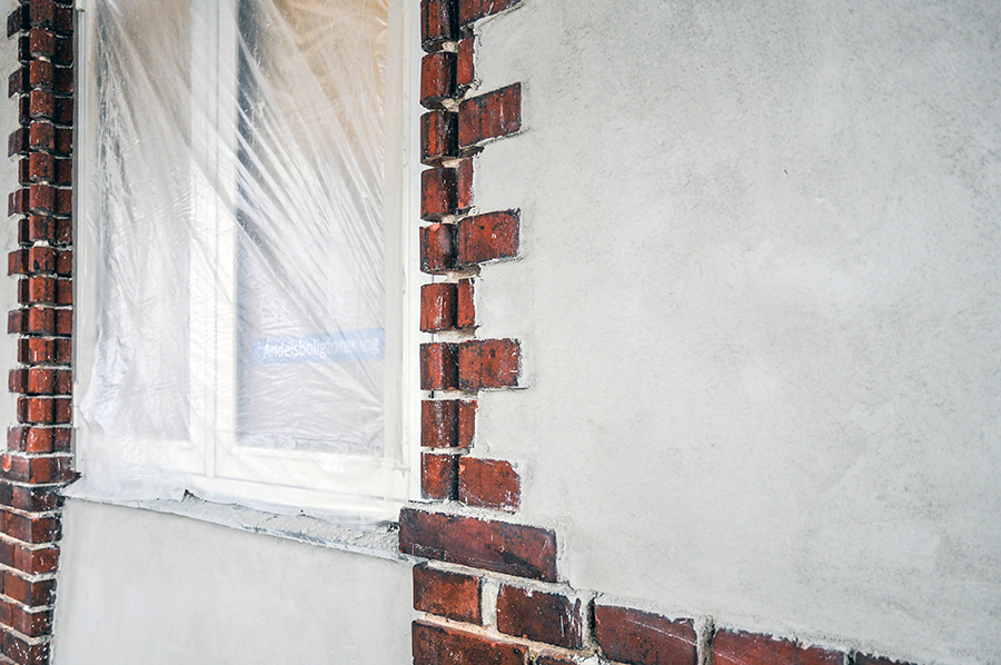 Det er Höflich - Byggeteknisk rådgivning i Sønderborg, der for Gråsten Andelsboligforening har ydet vejledning om, hvorledes man kommer generne til livs – og det er Fynsk & Søn A/S, der er fundet egnet til at udføre arbejdet med at nedbanke det gamle puds, efterfuge og påføre et nyt åndebar pudslag.